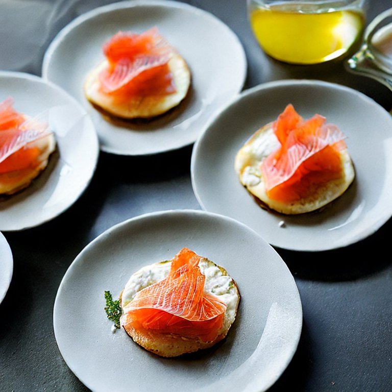For at lave blinnis med røget laks, stables de små pandekager med røget laks og en klat cremefraiche på toppen af hver pandekage. Retten kan serveres som en forret eller som en let frokost eller brunch-ret.